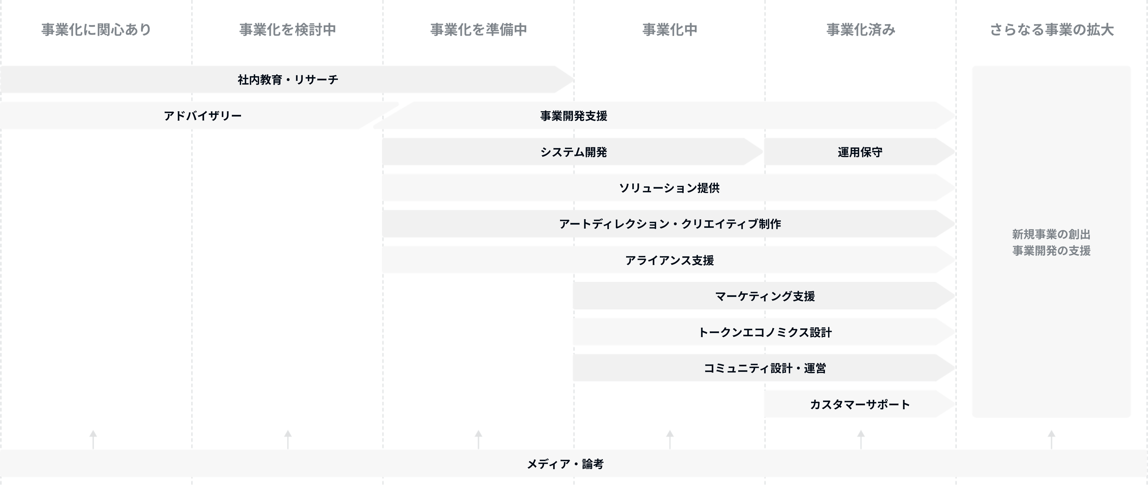 ãœãªã¥ãŒã·ã§ã³ãšã¯ãããŸããŸãªæ¥çã«ãããŠãWeb3äºæ¥ã®æåã«ã€ãªããããžãã¹ããŠããŠã®äœç³»ã§ããããªããã¯å¹Žé30件以äžã®ãããžã§ã¯ãããåŸãããç¥èŠãåºã«ãæŠç¥çå®ã»æè¡éçºã»äºæ¥éå¶ãªã©ãWeb3äºæ¥ã®ããŸããŸãªé åã§äŸ¡å€ãããããç¬èªãœãªã¥ãŒã·ã§ã³ãéçºããã客æ§ã®Web3äºæ¥æåãŸã§ã®æéãççž®ããŸãã
