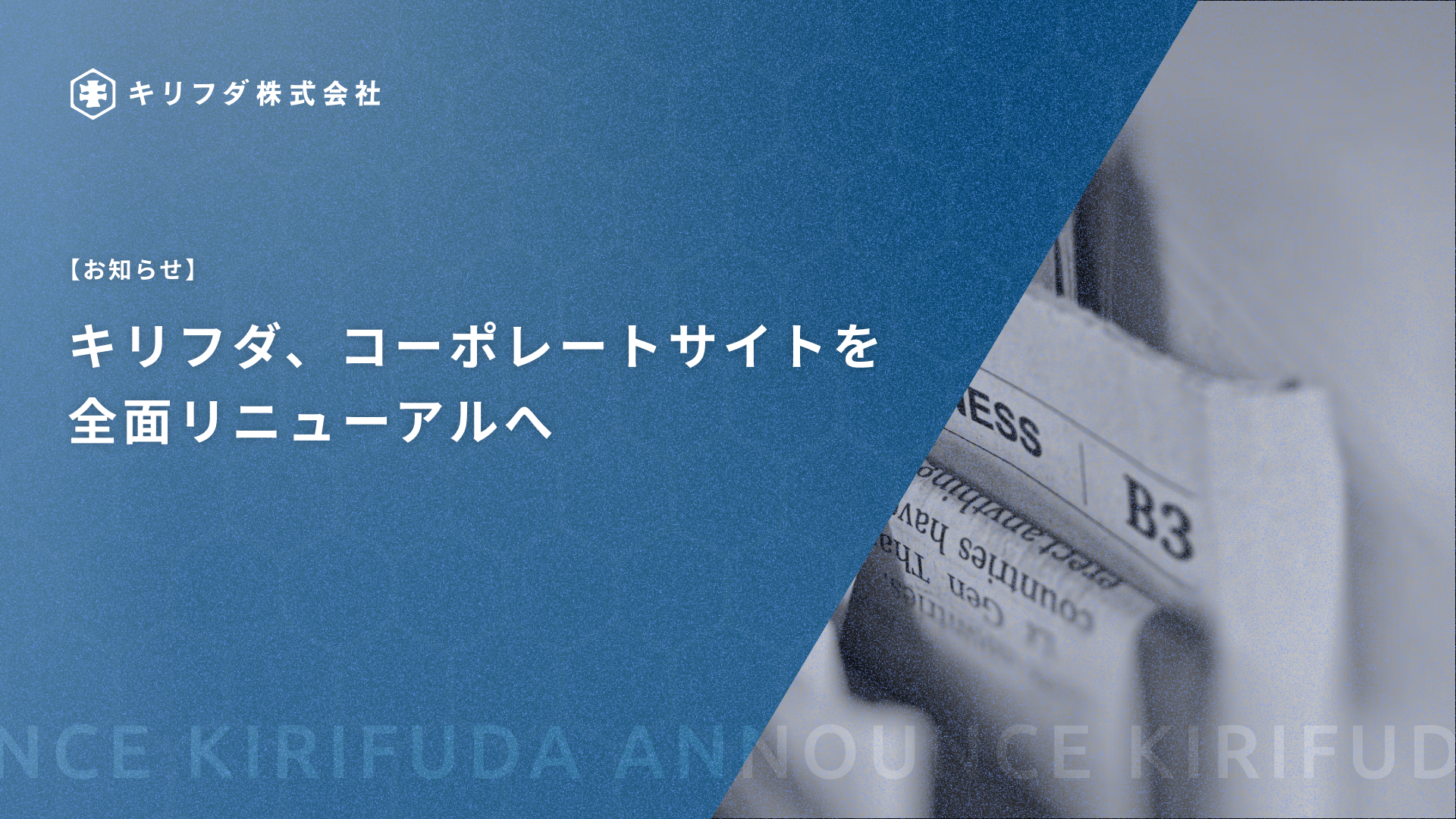 キリフダ株式会社(本社:東京都中央区、代表取締役社長:赤川英之、以下「キリフダ」)は、当社の事業内容と提供価値をより明確に伝えるため、コーポレートサイト(https://kirifuda.io/)を全面リニューアルしたことをお知らせいたします。
