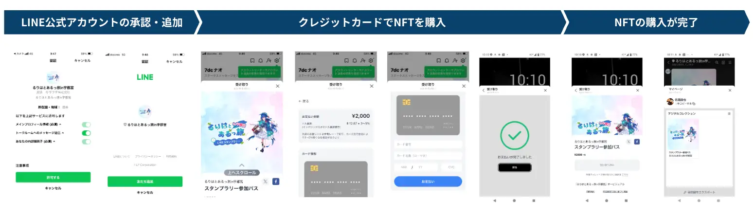 下記のリンクにある本企画用のLINE公式アカウント内から、クレジットカード決済により参加券となるNFTを取得いただき、参加することができます。